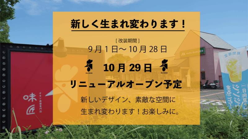 チキン南蛮専門店味匠 -本店-は、10月29日(水)にリニューアルオープン予定!改装期間:9月1日〜10月28日